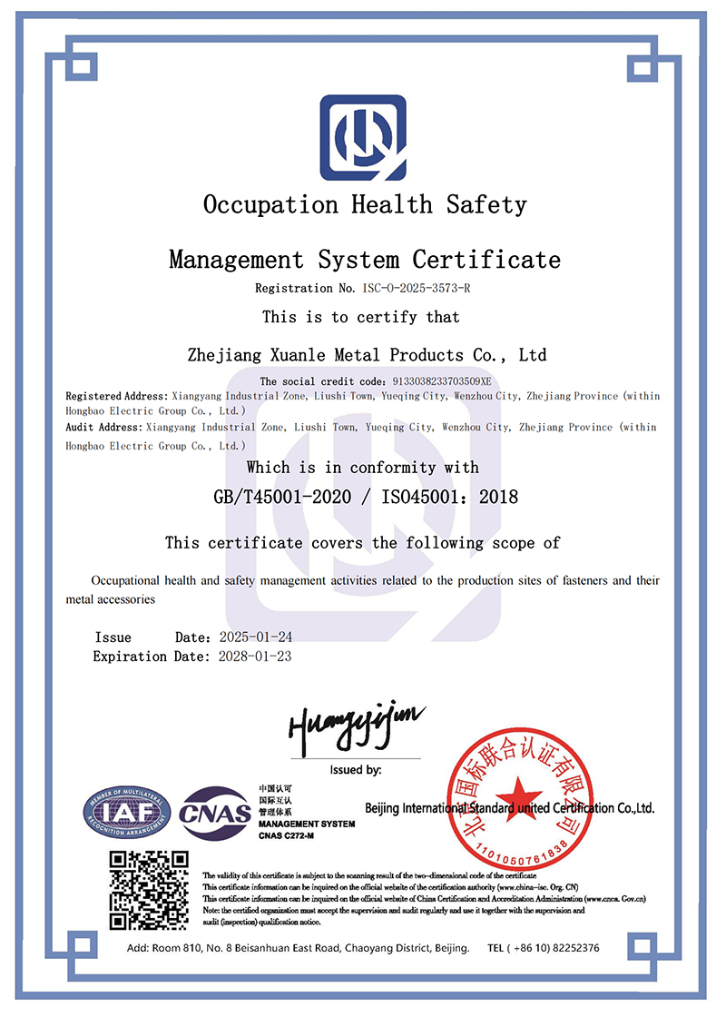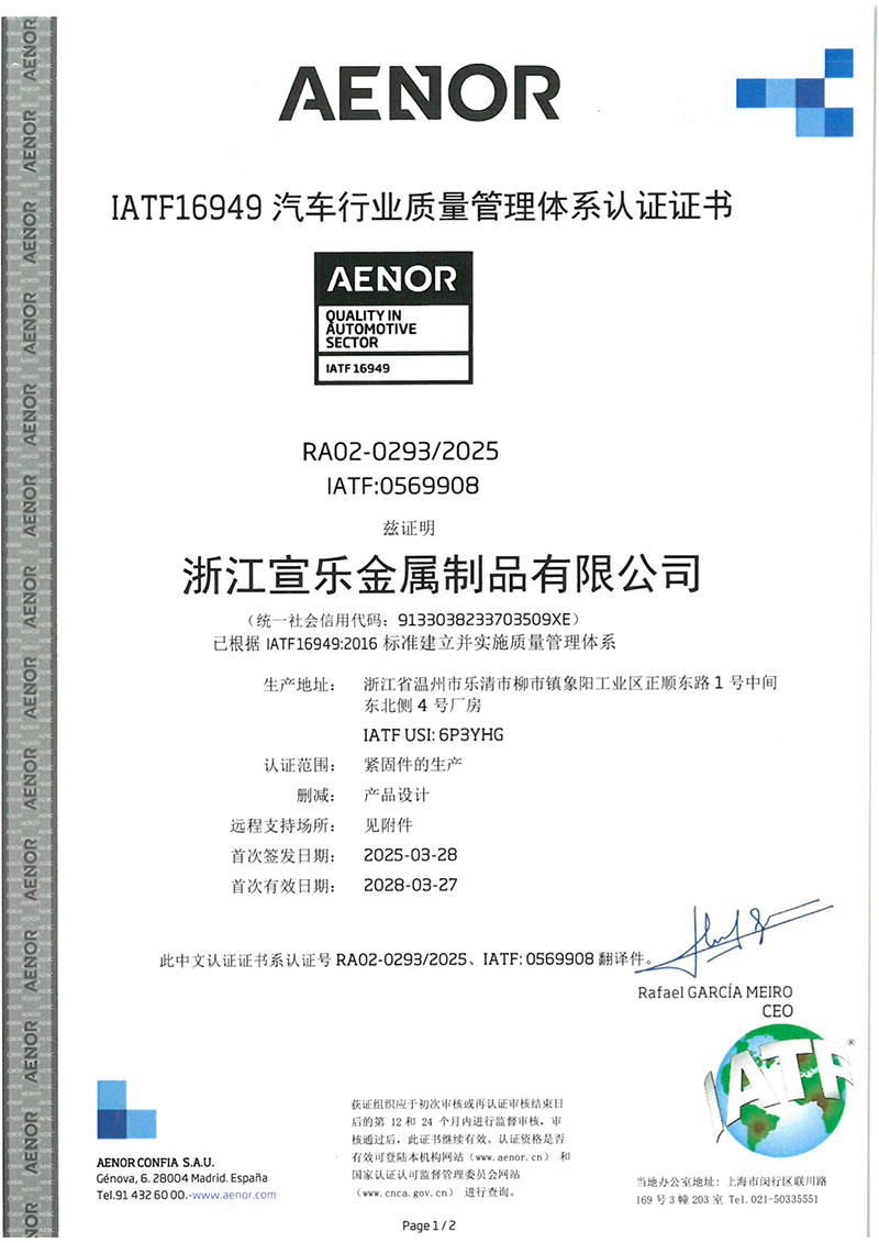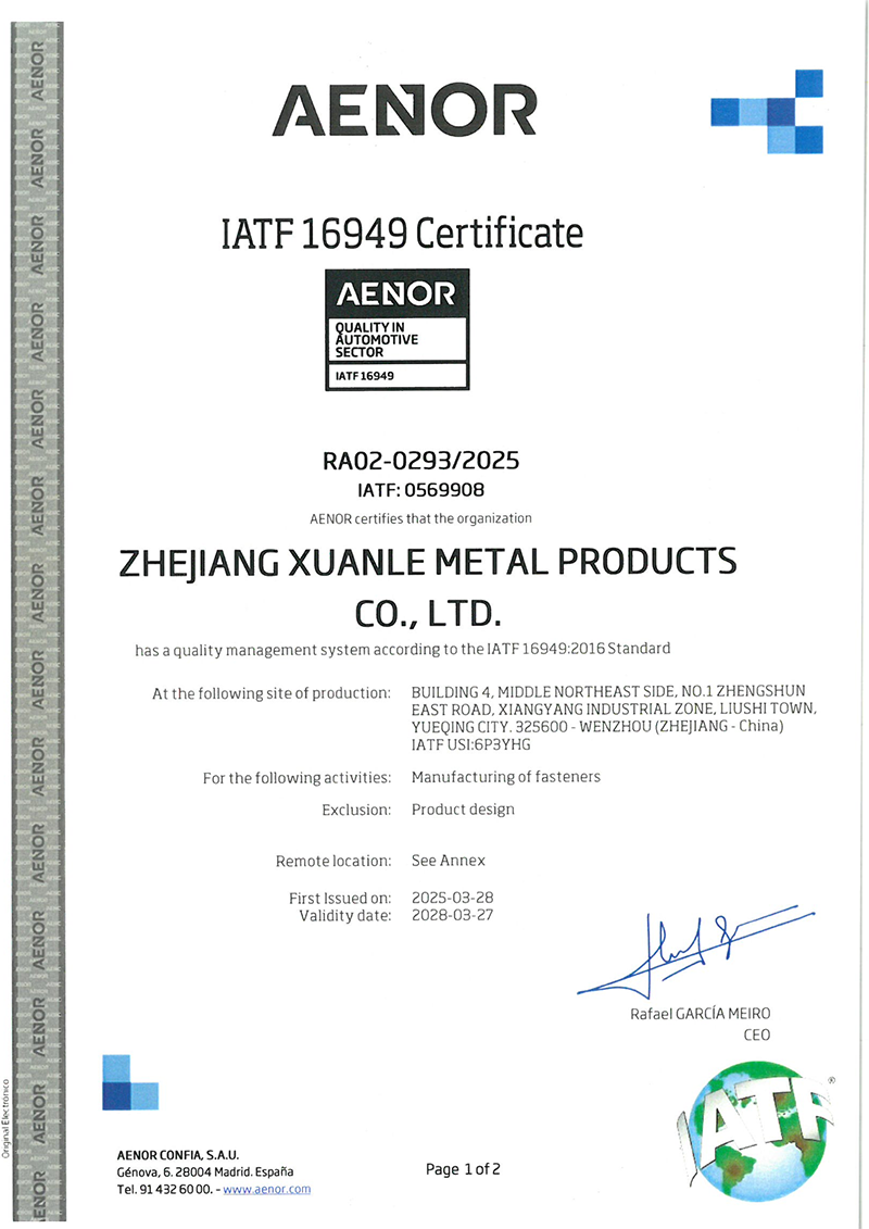 Established in 2010, we specialize in R&D and production of aluminum alloy fasteners, custom-shaped aluminum components, and electric power system products. Our products are exported to the U.S., Japan, Europe, the Middle East, the UAE, and other global markets. We hold IATF 16949, ISO 9001, ISO 14001, and ISO 45001 certifications, with full in-house testing and strict quality control from raw materials to finished products.